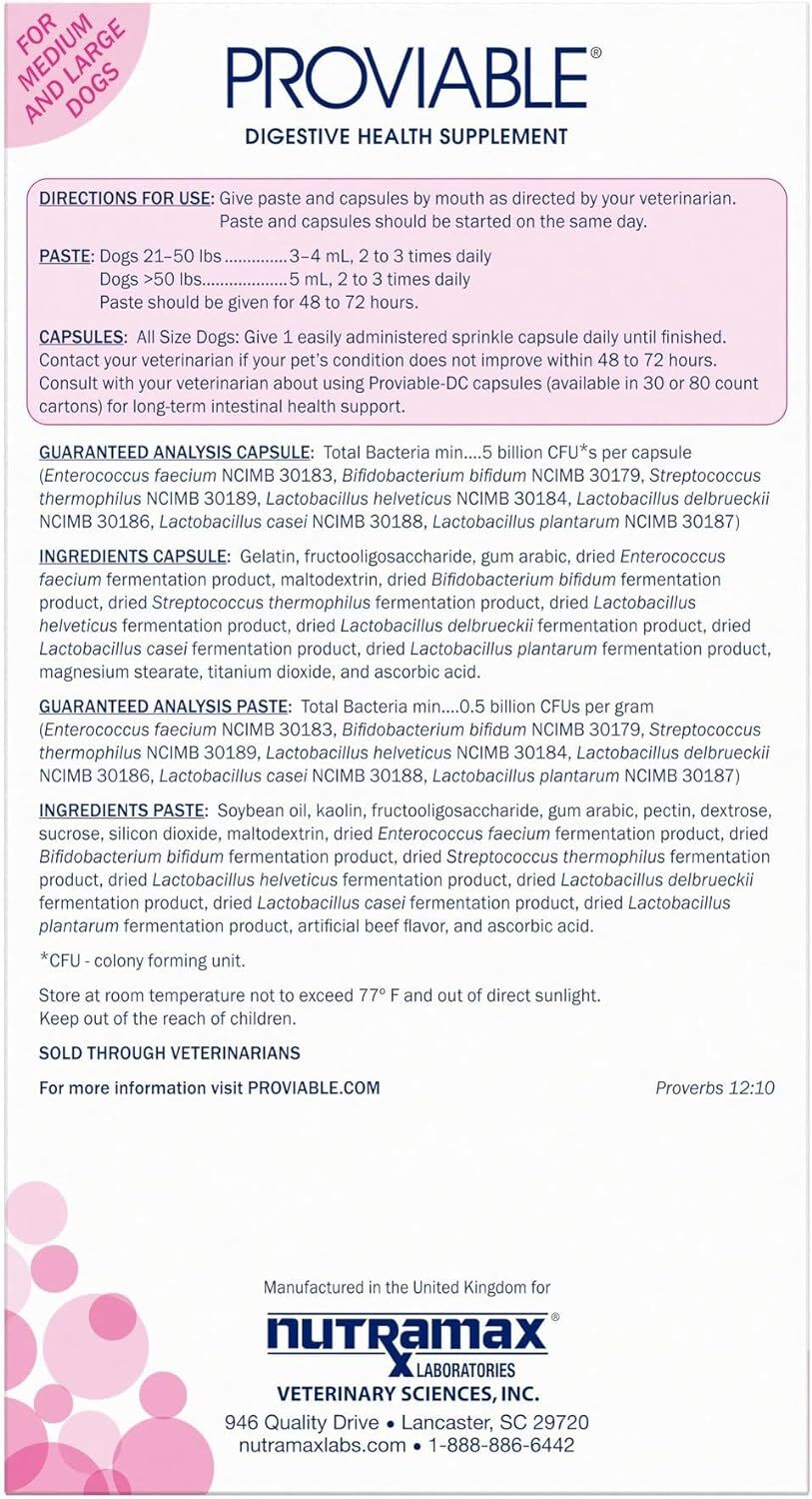 Proviable — это клинически исследованная пробиотическая добавка с несколькими штаммами для животных, содержащая миллиарды колониеобразующих единиц (КОЕ) полезных бактерий, которые помогают поддерживать здоровый баланс кишечника. Proviable содержит как пребиотики, так и пробиотики, помогающие поддерживать здоровье кишечника.