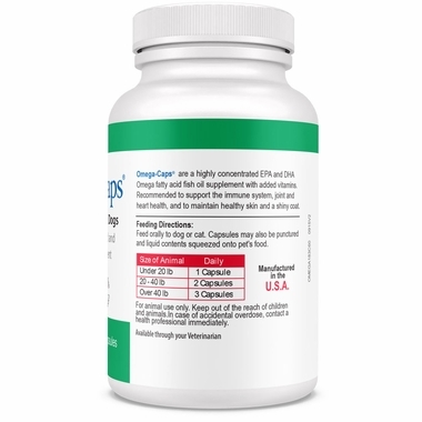 Omega-Caps™ For Cats & Smaller Dogs (Омега-Капс® для кошек и собак мелких пород) - это полный комплекс, включающий незаменимые жирные кислоты, витамины, хелатные минералы и антиоксиданты. Форма выпуска - мягкие гелевые капсулы.