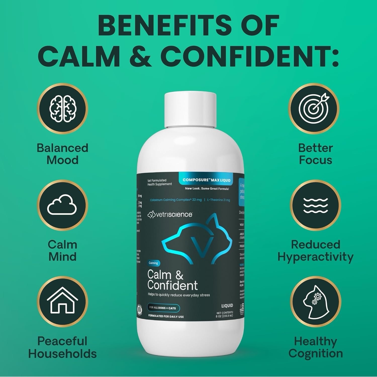 Успокаивающий комплекс в жидкости Composure от компании Vetri-Science - это успокаивающая формула для поддержки сбалансированного поведения животных во время стресса.