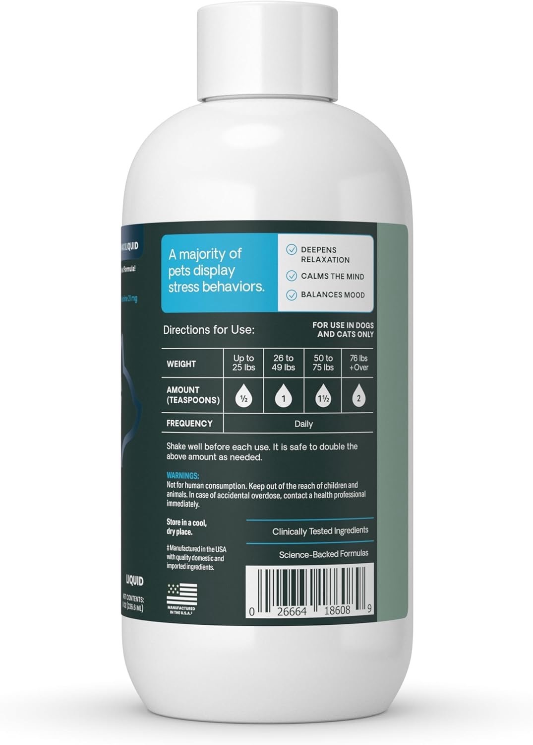 Composure Max Liquid для кошек и собак идеально подходит для ситуаций, когда ваше животное подвержено стрессу, в том числе: изменения в окружении, посещение выставок, ветеринарной клиники, груминг, разлука с хозяином, путешествия. Поможет остановить стресс, сохраняя при этом индивидуальность и прежний уровень энергии. Безопасно для ежедневного приема, не вызывает привыкания, сонливости или нарушений моторики.